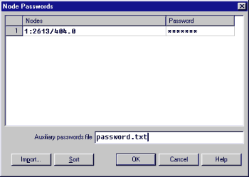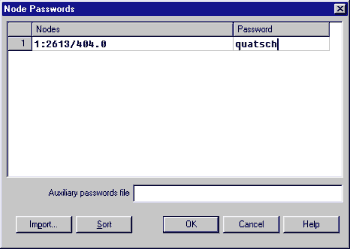 Here you have the option of importing an existing password file, i.e. from FrontDoor, InterMail, etc. simply push the import button, choose the correct file format and off you go. You can also manually enter the passwords,