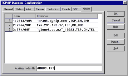 The nodelist was originally not designed to contain IP addressing and protocol information. Fidonet inherently was a "modem" network. Therefore, all IP information has to be entered as an override to the standard nodelist information.